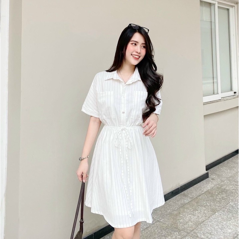 White Stripe Dress 2 Pockets Shopee Malaysia Very well made.