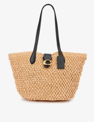COACH Popcorn textured straw and leather tote bag Selfridges Very well made.