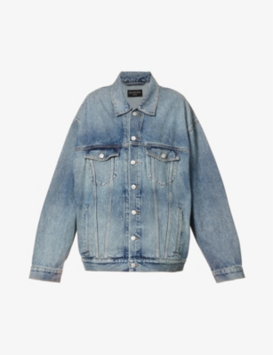 BALENCIAGA Logo pattern distressed denim jacket Selfridges Very well made.