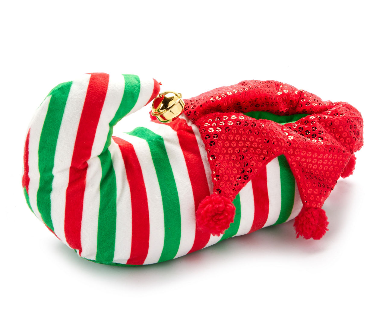 Winter Wonder Lane Red Green White Stripe Elf Slippers Big Lots Very well made.