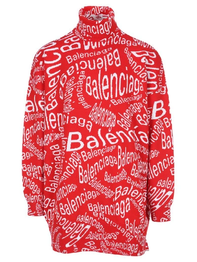 Balenciaga Oversize Jacquard Wool Knit Jumper In Red ModeSens Very well made.