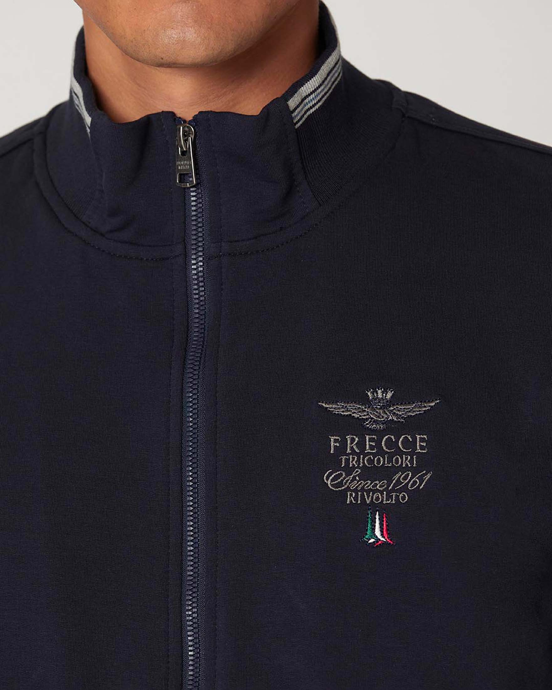 Felpa blu in cotone stretch con chiusura zip e ricamo Frecce Tricolori Very well made.