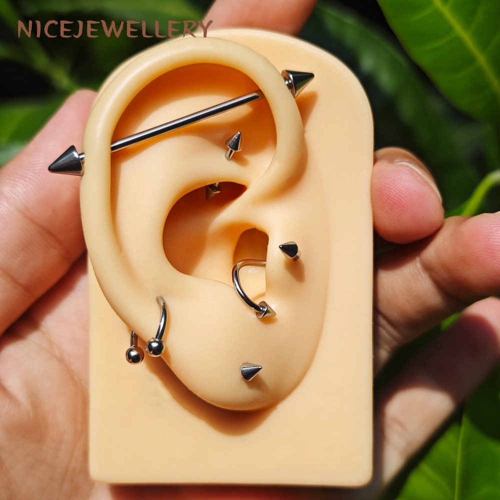 1Pc pointed cone Industrial Barbell Ear bone nail Splicing ear Very well made.