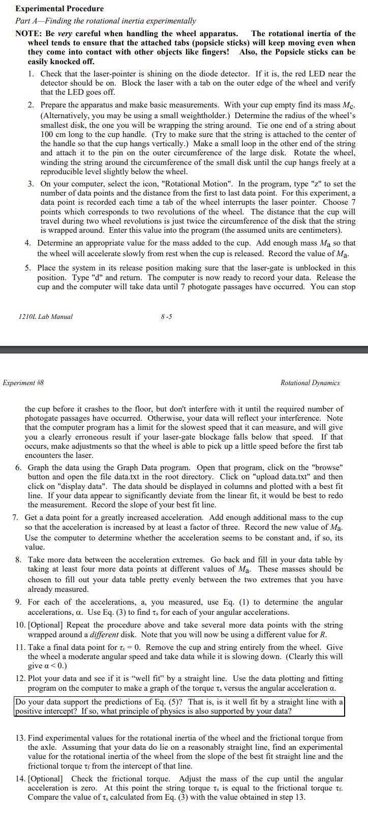 Solved Experimental Procedure Part A Finding the rotational Very well made.