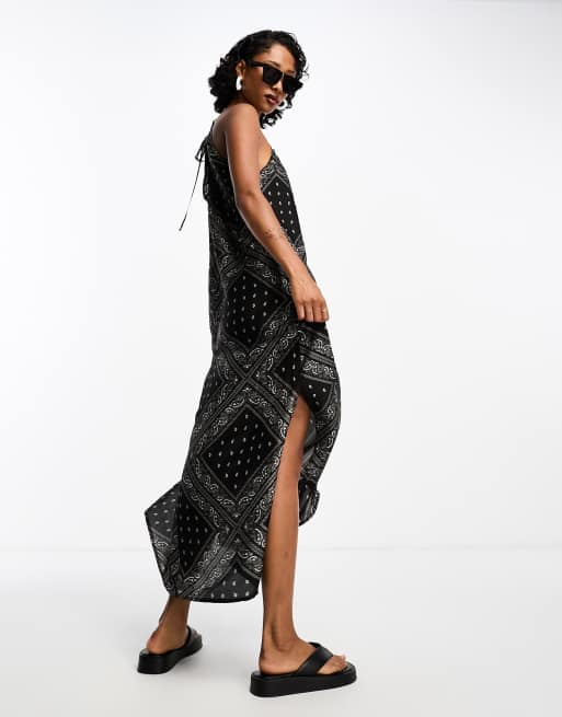 Bandana Print Wrap Pocket Ruffle Tiered Cami Maxi Dress in 2023 Very well made.
