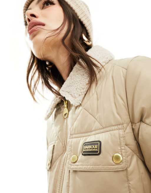 Barbour International Supanova long quilted collared jacket in beige Very well made.
