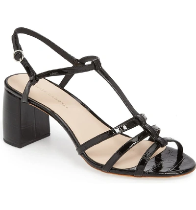 Loeffler Randall Elena Shiny Crocodile embossed T strap Block heel Very well made.