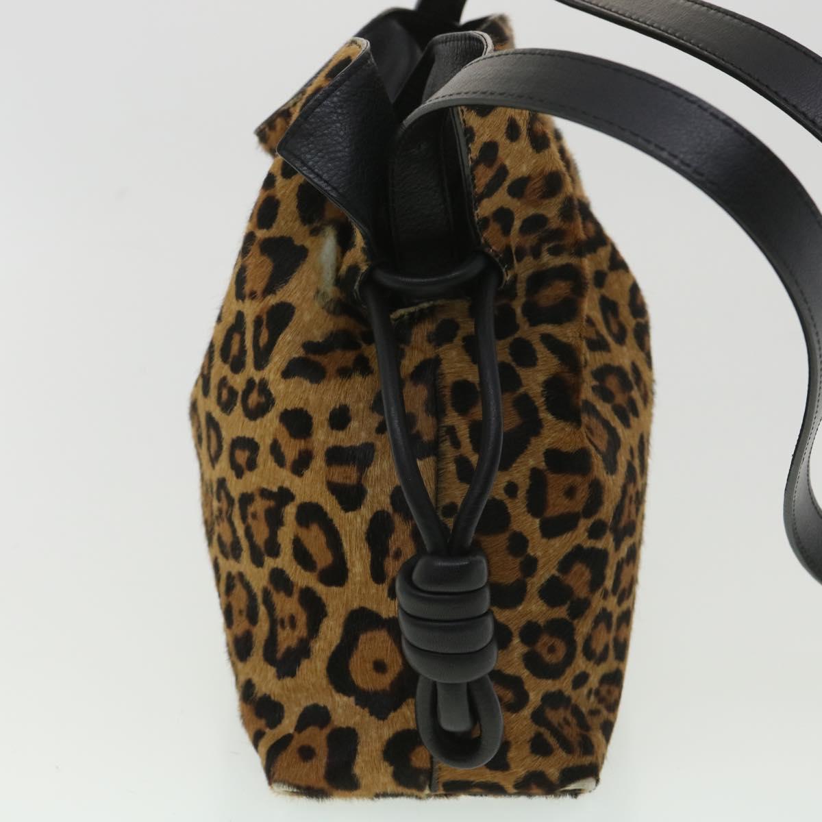 Loewe Leopard Shoulder Bag Unborn Calf Skin Leather Brown Black Very well made.