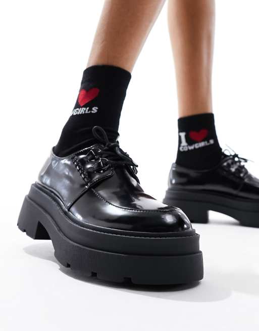 London Rebel X wide fit cleated sole lace up shoes in black Very well made.