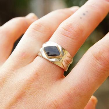 Vintage Modernist Sterling Silver Black Stone Inlay Ring Very well made.