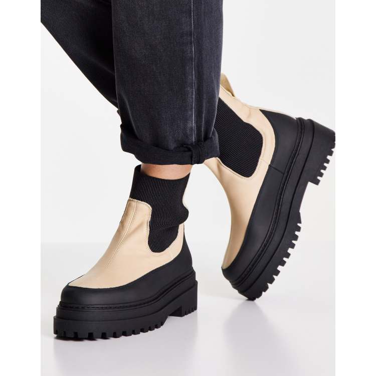 Selected Femme chunky boots in cream and black Very well made.