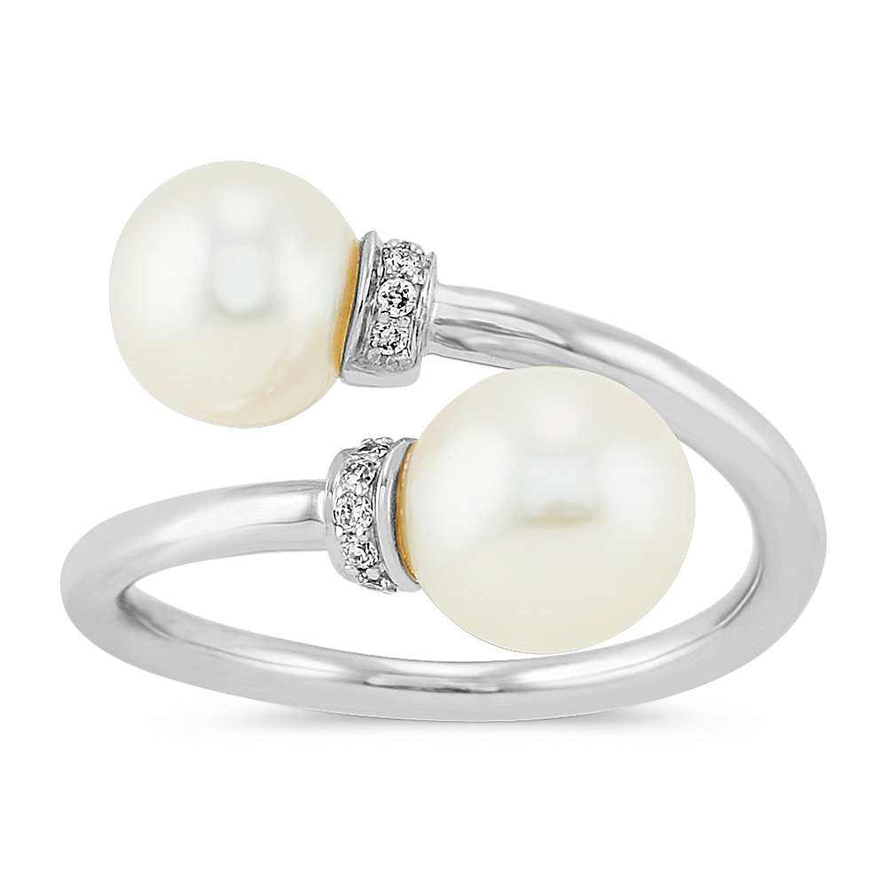 6.5 8mm Freshwater Cultured Pearl Diamond Crossover Ring Very well made.