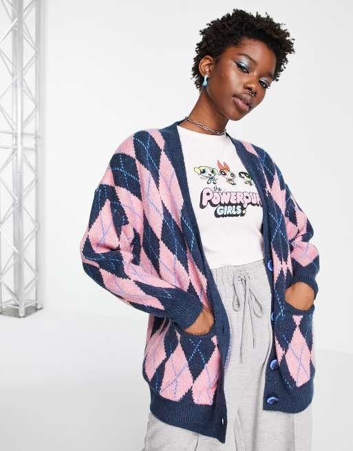 Topshop knitted argyle pocket cardigan in blue Very well made.