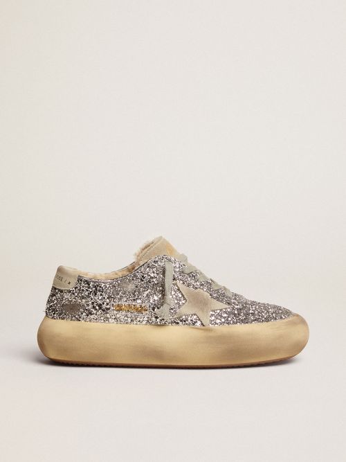 Women s Space Star shoes in silver glitter with shearling lining Very well made.