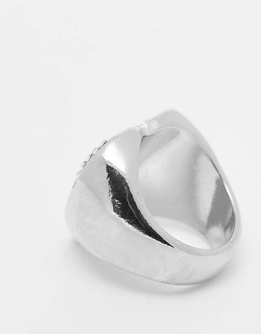 ASOS DESIGN heart signet ring with clear crystal pave in silver Very well made.