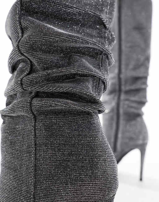 London Rebel stilletto rouche knee boots in silver glitter ASOS Very well made.