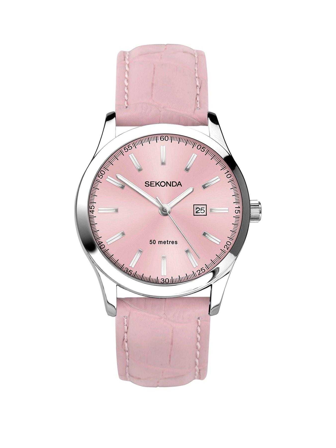 ladies infinity silver tone watch pink face silver hands pink Very well made.