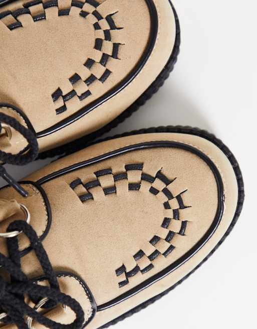 Truffle Collection wide fit lace up creeper shoes in beige micro Very well made.