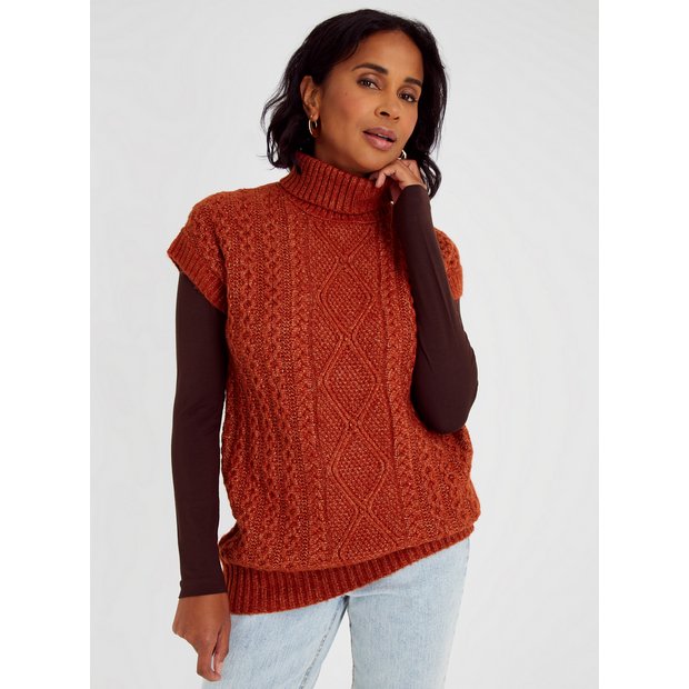 Buy Rust Roll Neck Cable Knit Sleeveless Jumper 12 Jumpers Tu Very well made.