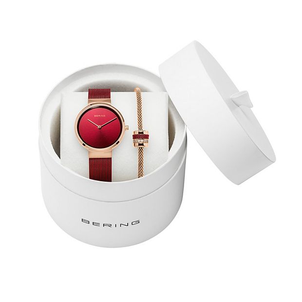 BERING Women s Classic Rose Gold Tone Stainless Red Strap Watch Very well made.