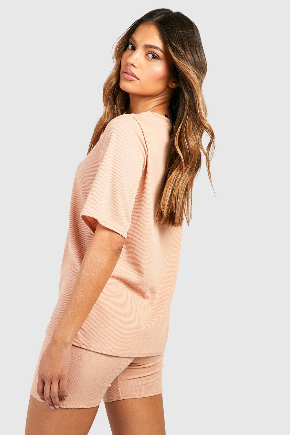 Tan Ribbed Knit Biker Shorts Set Very well made.