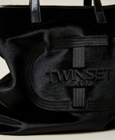 Borsa shopper in velluto con logo Donna Nero TWINSET Milano Very well made.