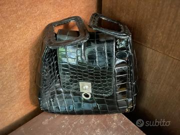 BORSA DONNA COCCODRILLO NERA BLACK VINTAGE USATA REAL CROCODILE BAG Very well made.
