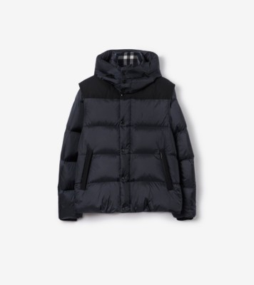 Detachable Sleeve Nylon Puffer Jacket in Navy Men Burberry Official Very well made.
