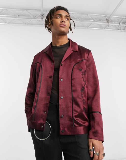 ASOS EDITION western revere harrington jacket in burgundy satin with embroidery Very well made.