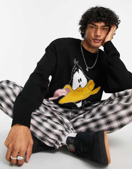 ASOS DESIGN Looney Tunes Daffy Duck jumper in black ASOS Very well made.