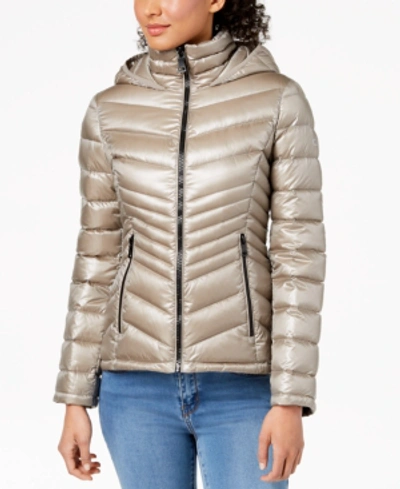 Calvin Klein Petite Hooded Packable Puffer Coat In Shine Thistle Very well made.