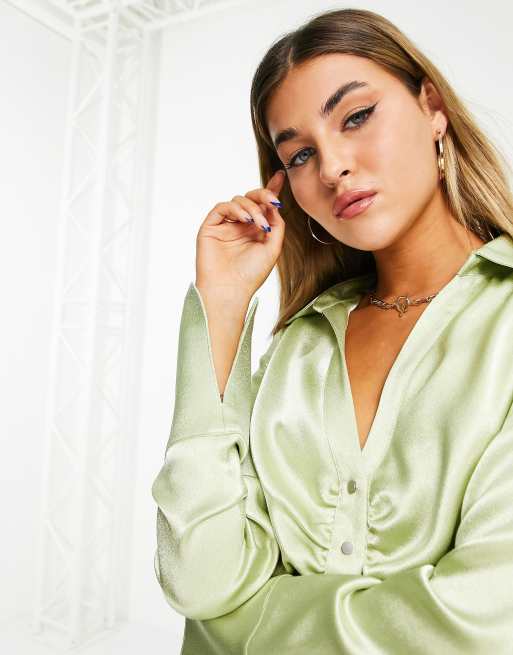 Topshop Camicia arricciata in raso verde mela con bottoni a Very well made.