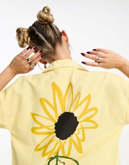 Native Youth Camicia da bowling in misto lino giallo limone con Very well made.