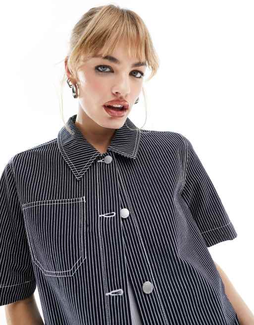 Only Camicia di jeans leggera e squadrata blu navy a righe in Very well made.