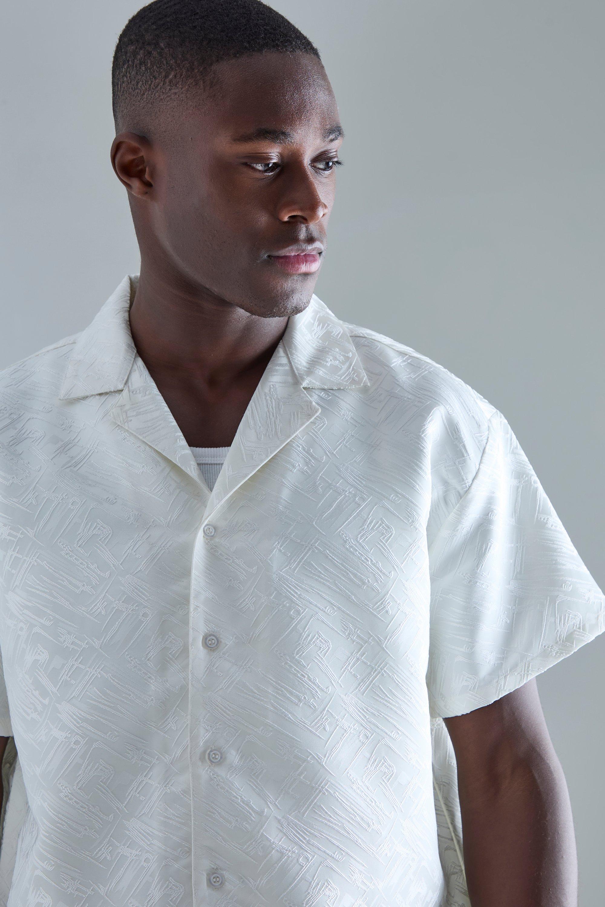 Camicia squadrata a maniche corte con trama a righe Very well made.