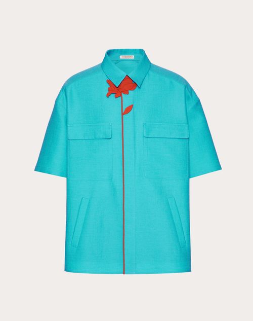 Camicia Da Bowling In Lan E Seta Con Ricamo Fiore per Uomo in Very well made.