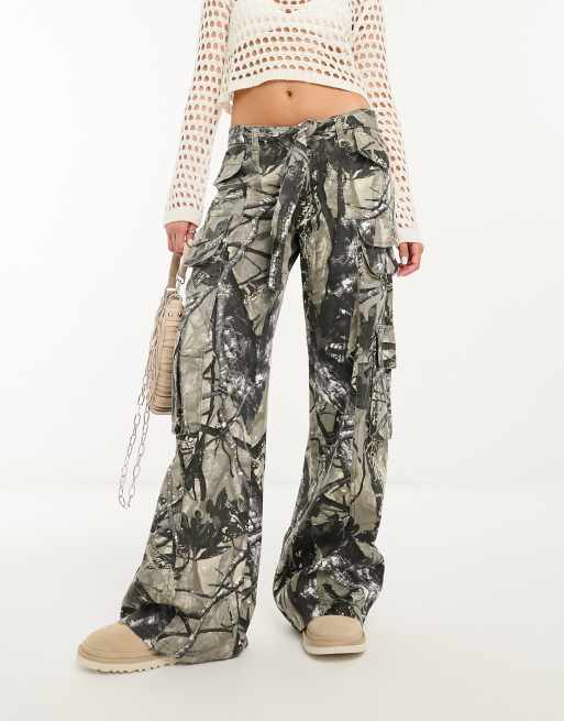 The Kript low rise wide leg cargo pants in dark camo Very well made.