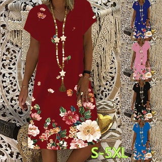 Fashion Women Dress Vintage Floral Print Short Sleeve Casual Party Very well made.