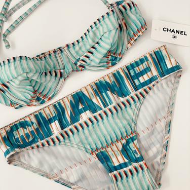 Vintage CHANEL Letter Logo Bikini 2 piece Swim Suit Swimwear Very well made.